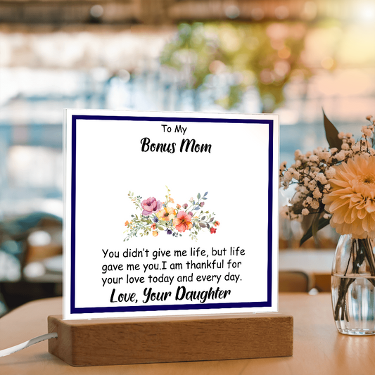 To My Bonus Mom - Beautiful Heartfelt Acrylic Gift from Stepdaughter - Appreciation Keepsake for Bonus Mother - Thank You for Loving Me Like Your Own - Mother's Day, Birthday, or Christmas Gift
