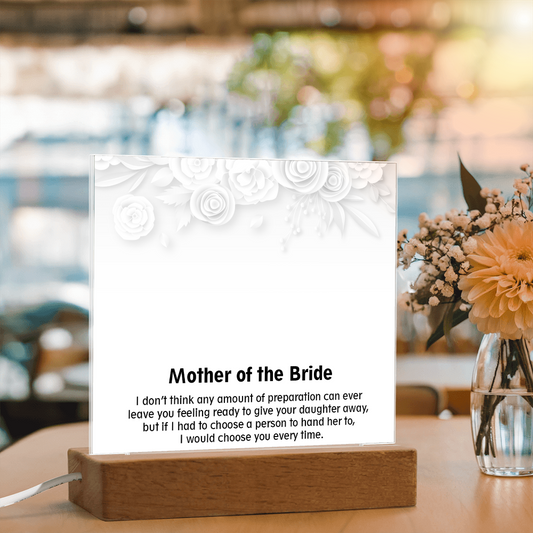 To My Mother of the Bride - Elegant Acrylic Keepsake Gift from Daughter - Thank You for Your Love and Support on My Wedding Day