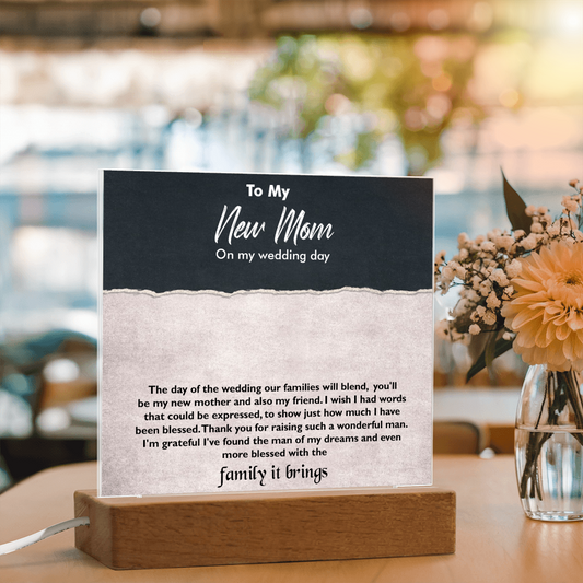 To My New Mom Acrylic Square Plaque – Heartfelt Gift for Stepmom or Mother-in-Law, Loving Message Keepsake from Son or Daughter, Elegant Decorative Gift for Mother's Day, Wedding, or Special Occasion