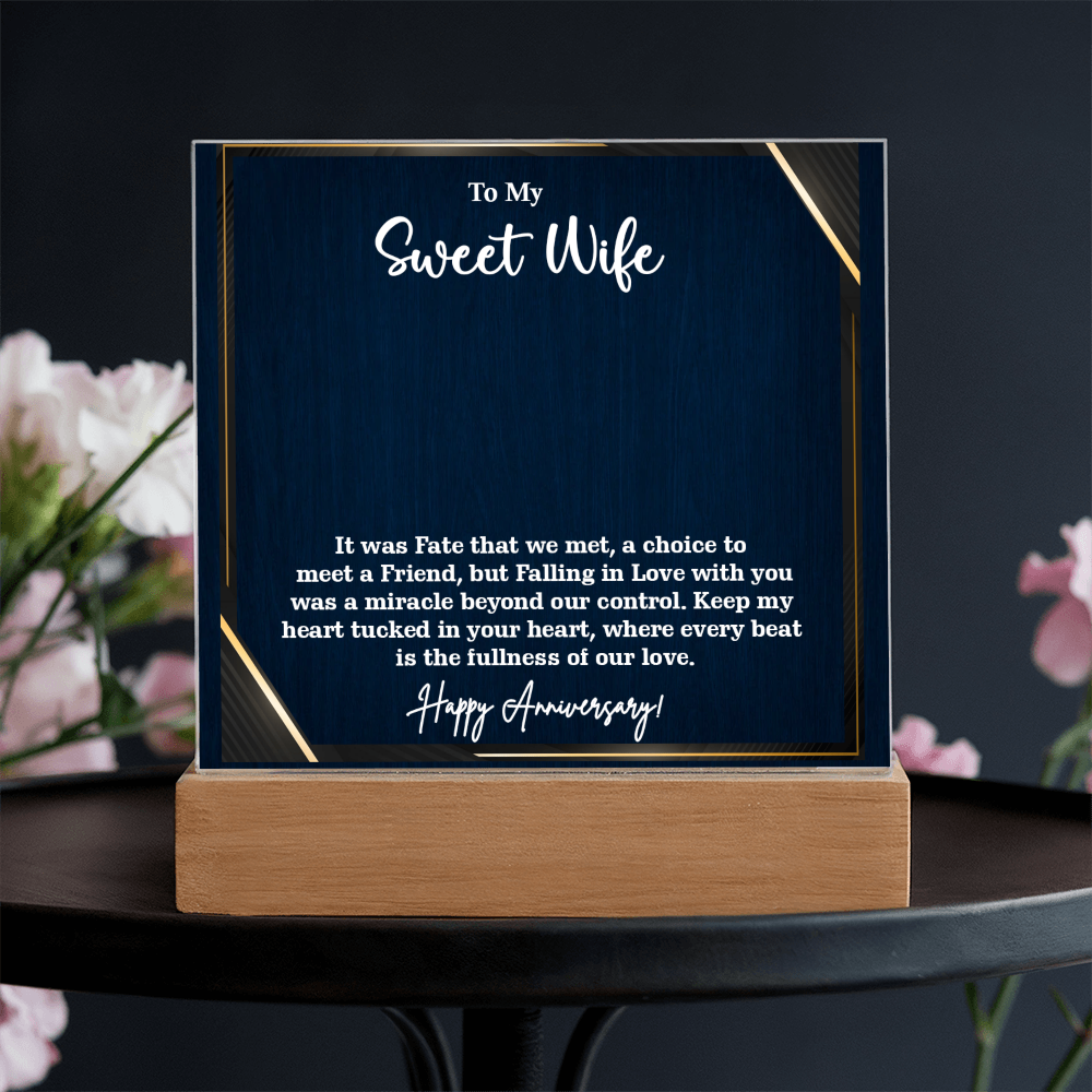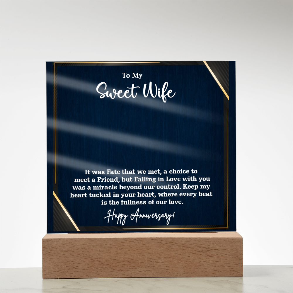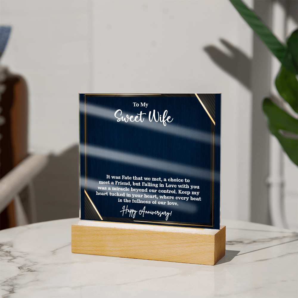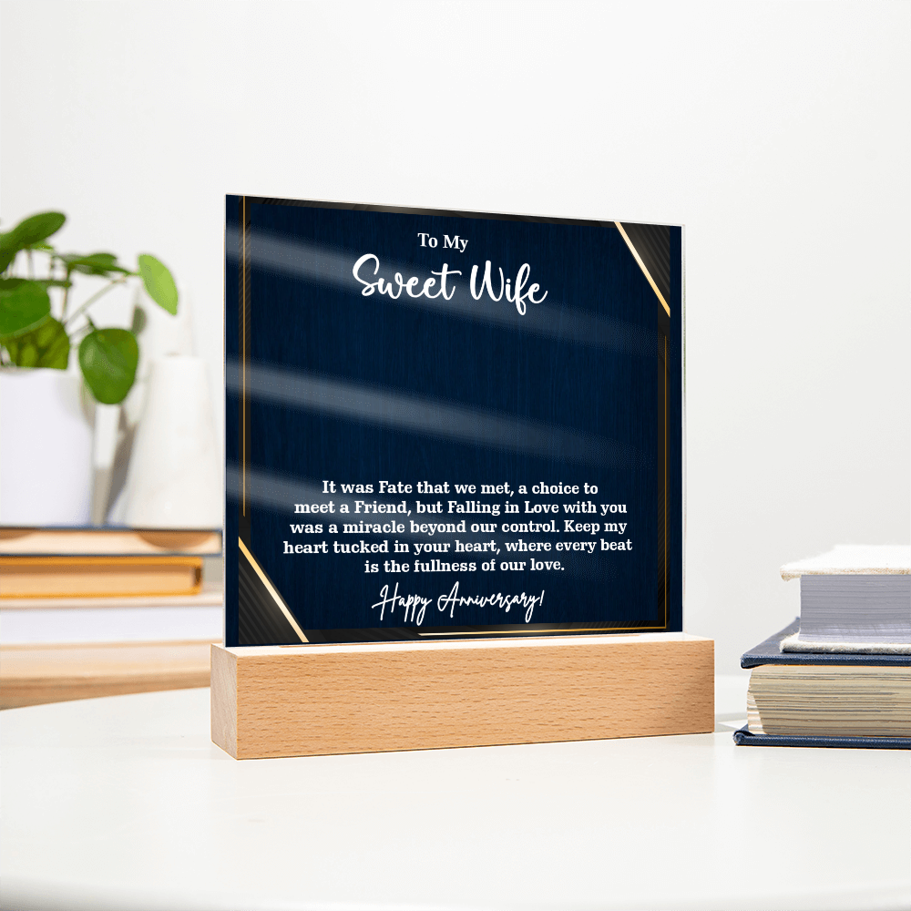 To My Sweet Wife Acrylic Square Plaque – Romantic Gift for Wife from Husband, Heartfelt Love Message, Elegant Display Keepsake for Anniversary, Birthday or Just Because