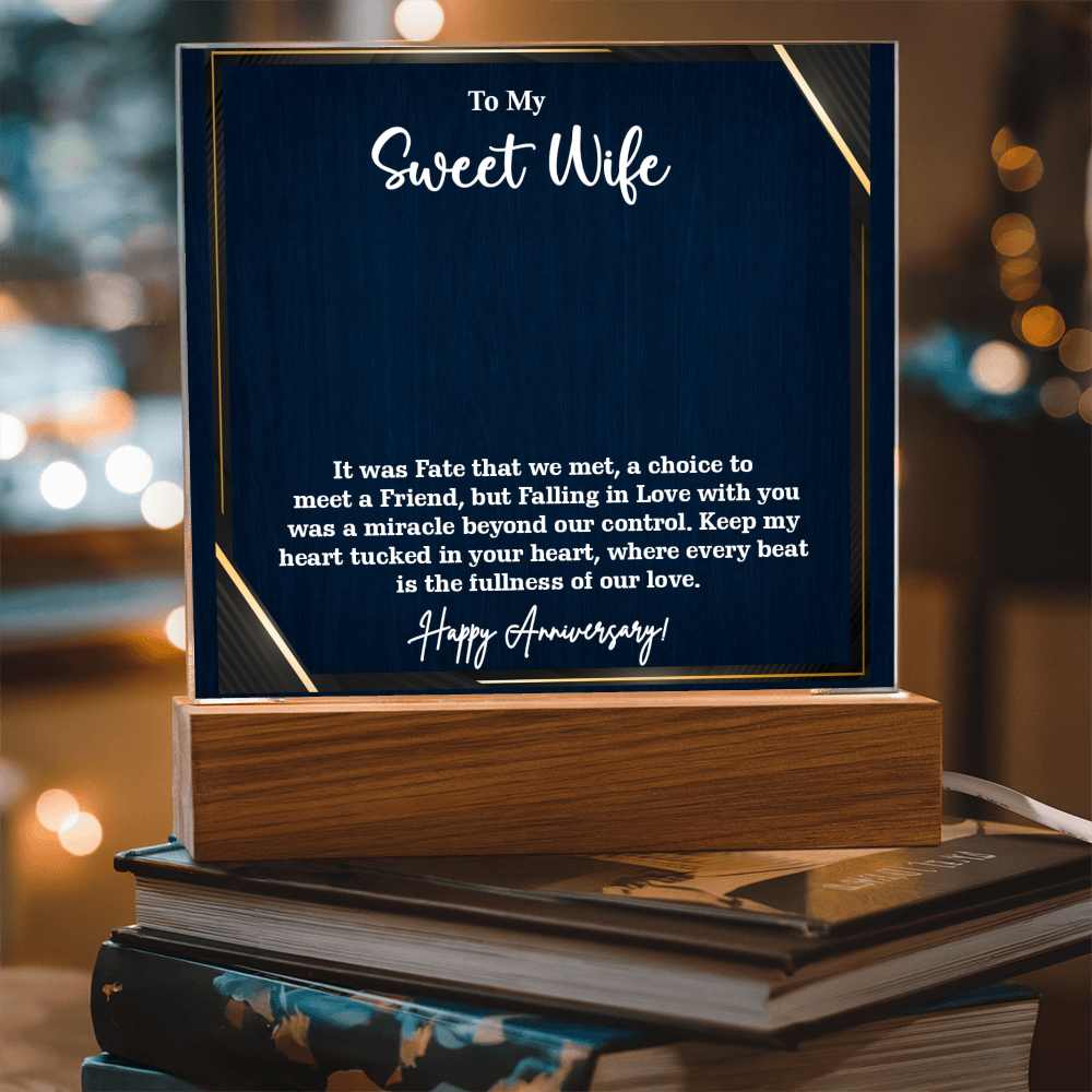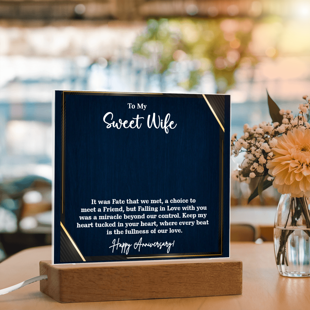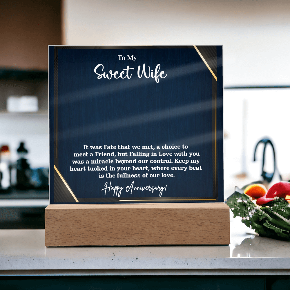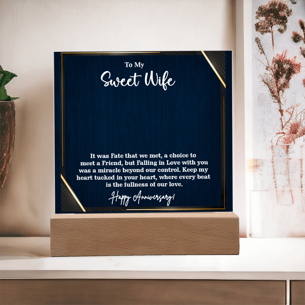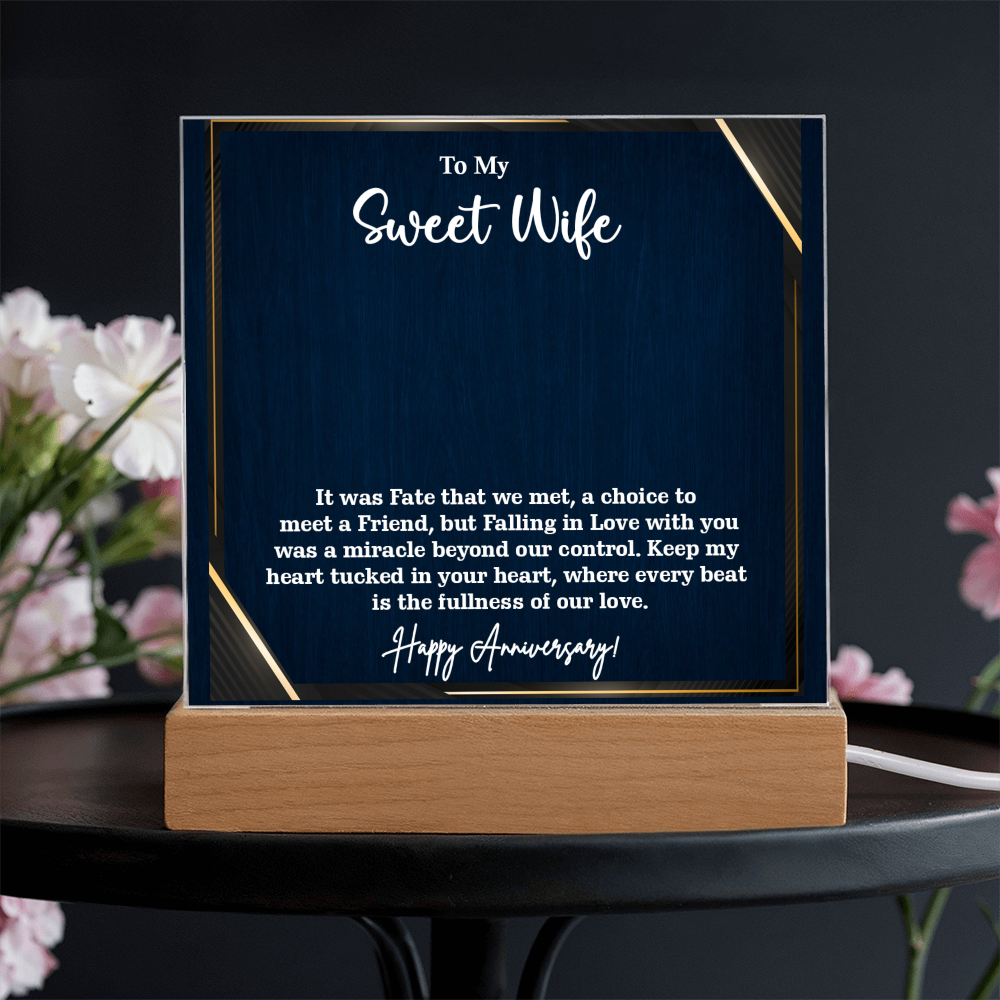 To My Sweet Wife Acrylic Square Plaque – Romantic Gift for Wife from Husband, Heartfelt Love Message, Elegant Display Keepsake for Anniversary, Birthday or Just Because
