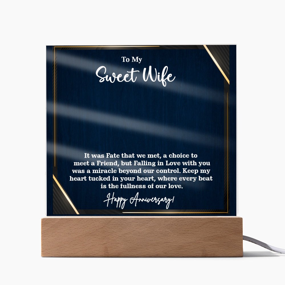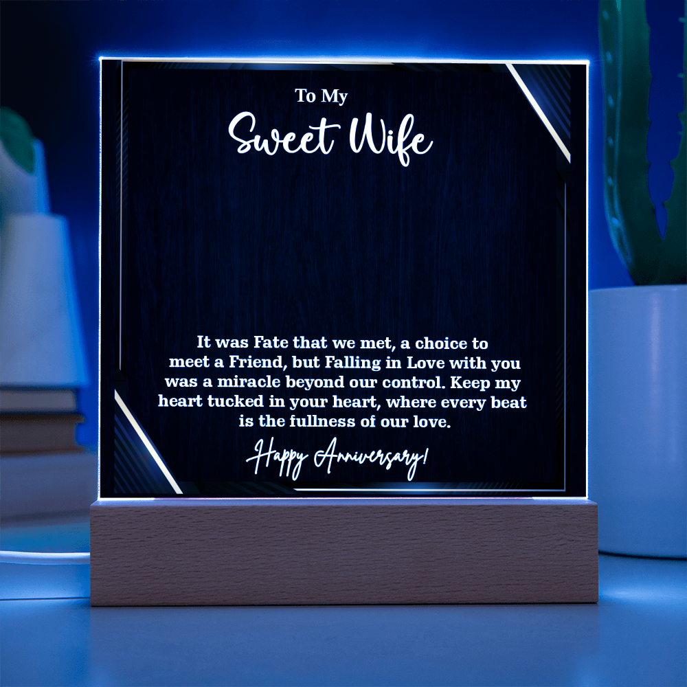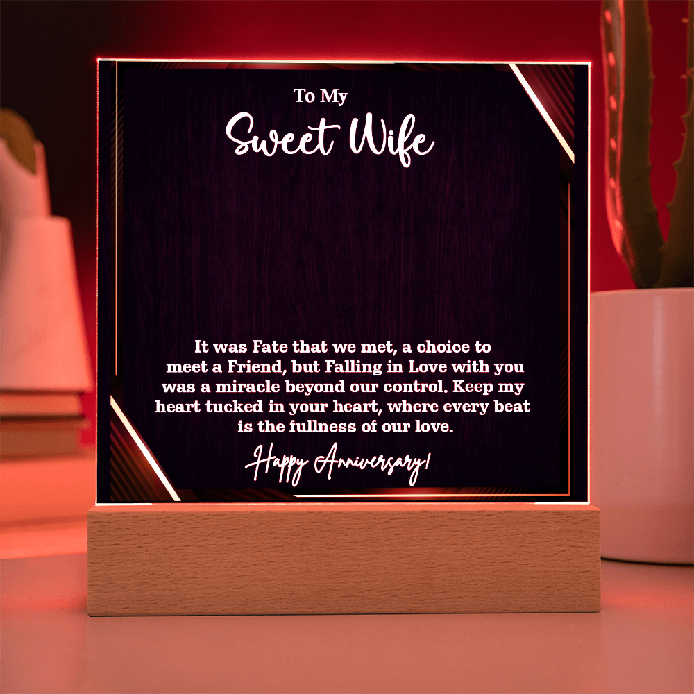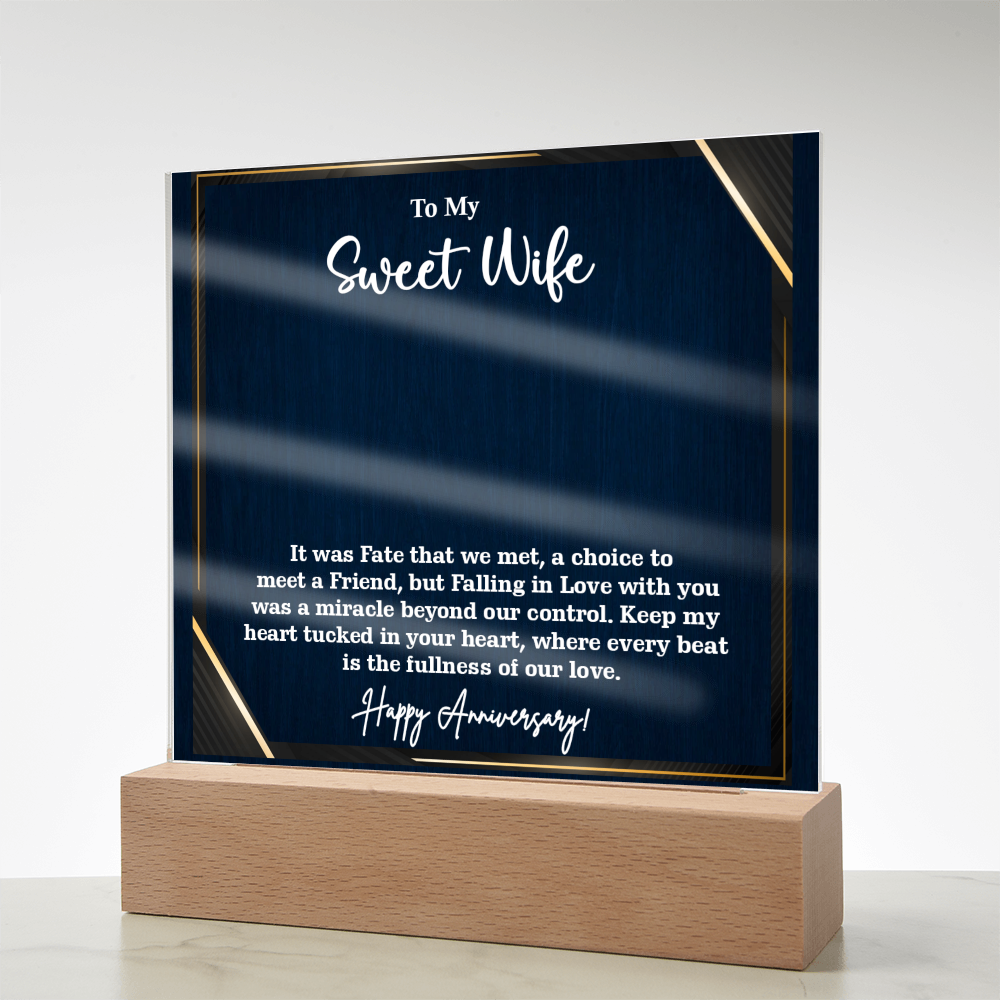 To My Sweet Wife Acrylic Square Plaque – Romantic Gift for Wife from Husband, Heartfelt Love Message, Elegant Display Keepsake for Anniversary, Birthday or Just Because