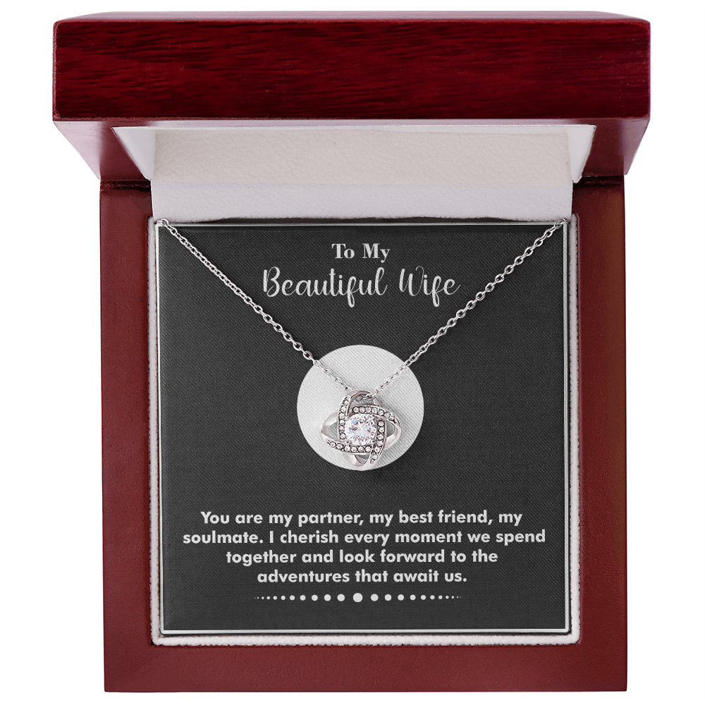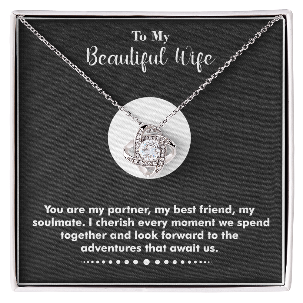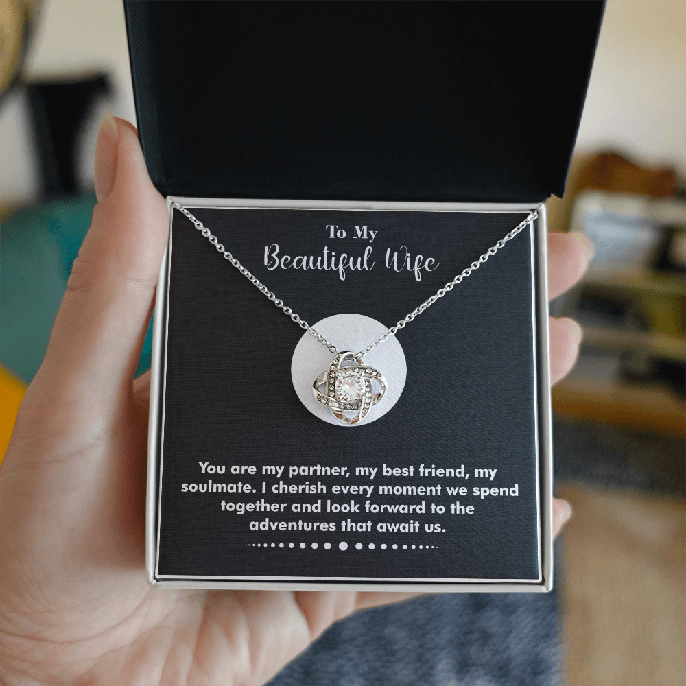 To My Wife – Love Knot Necklace with Heartfelt Message: “You Are the Best Thing That Ever Happened to Me” – Romantic Jewelry Gift from Husband, Birthday Gift, Anniversary Gift